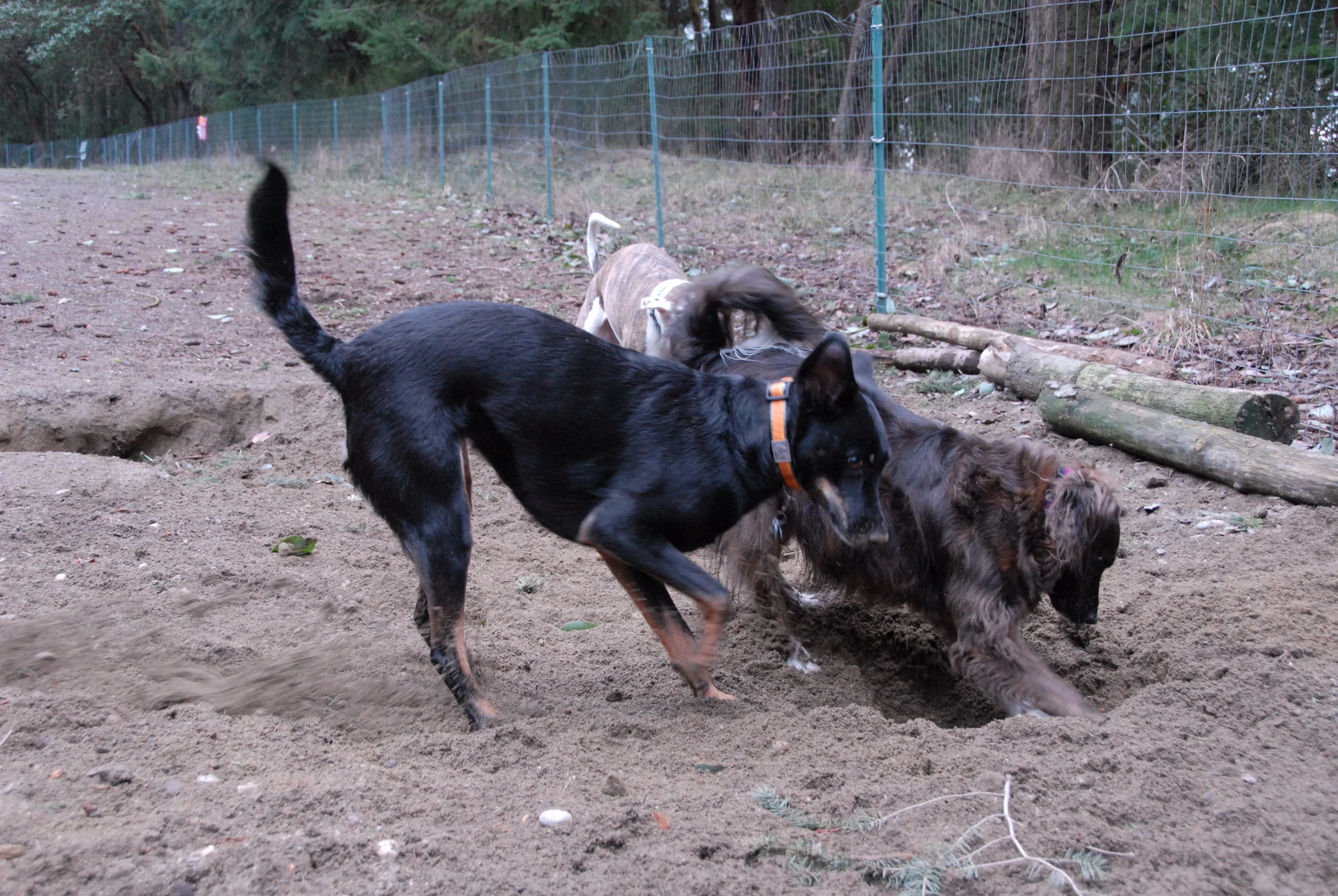 Girls take turns digging in the soft dirt at the Shoreview Dog Park